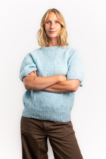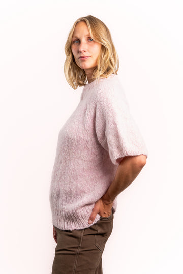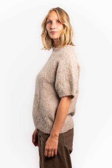 Ida kortærmet bluse er håndstrikket i en blød og luftig alpakauldsblanding fra Italien. Garnet er...