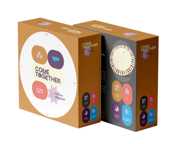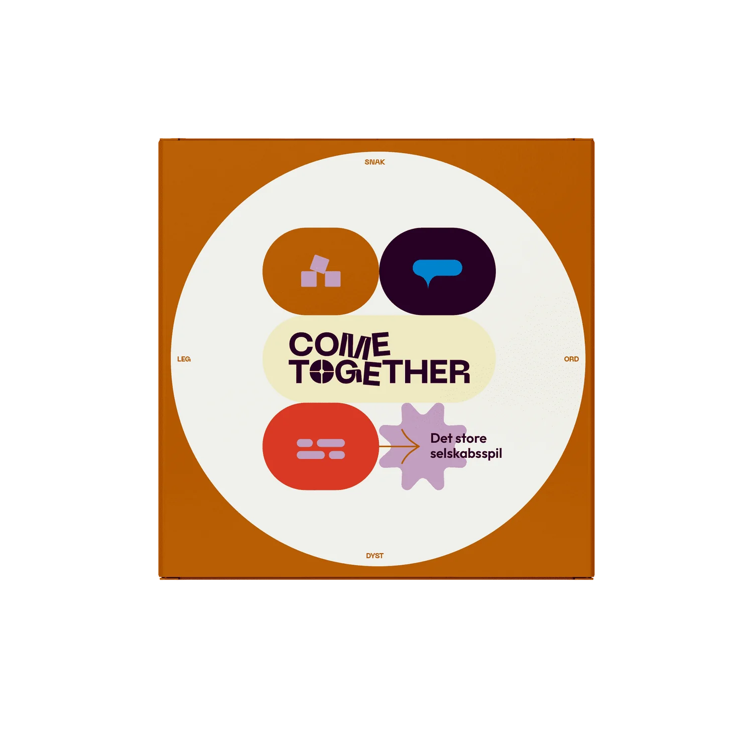 Med Come Together skal der dystes i sjove selskabs- og ordlege, kæmpe om at vinde spillet, krydret med strategi og de hyggelige samtaler.