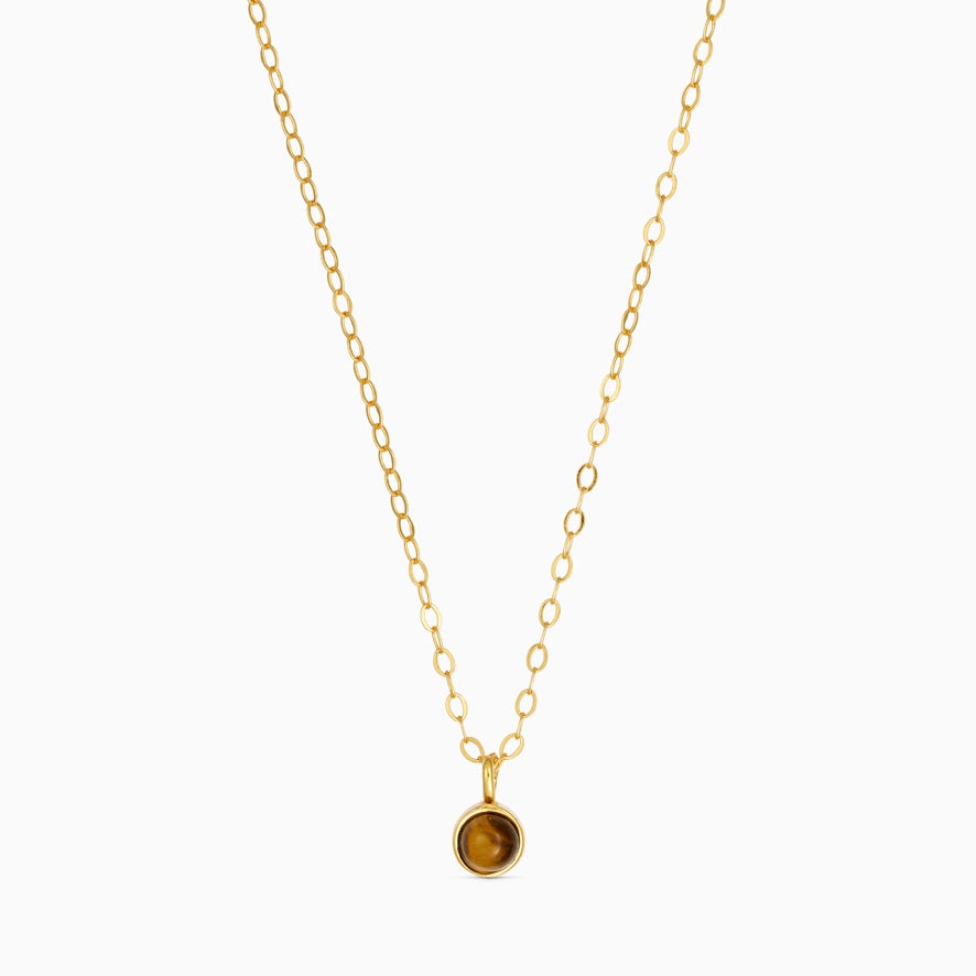 Krystal halskæde Aya Tiger Eye fra Soï. De gyldne og brune toner fra Tiger Eye symboliserer styrke og stabilitet.