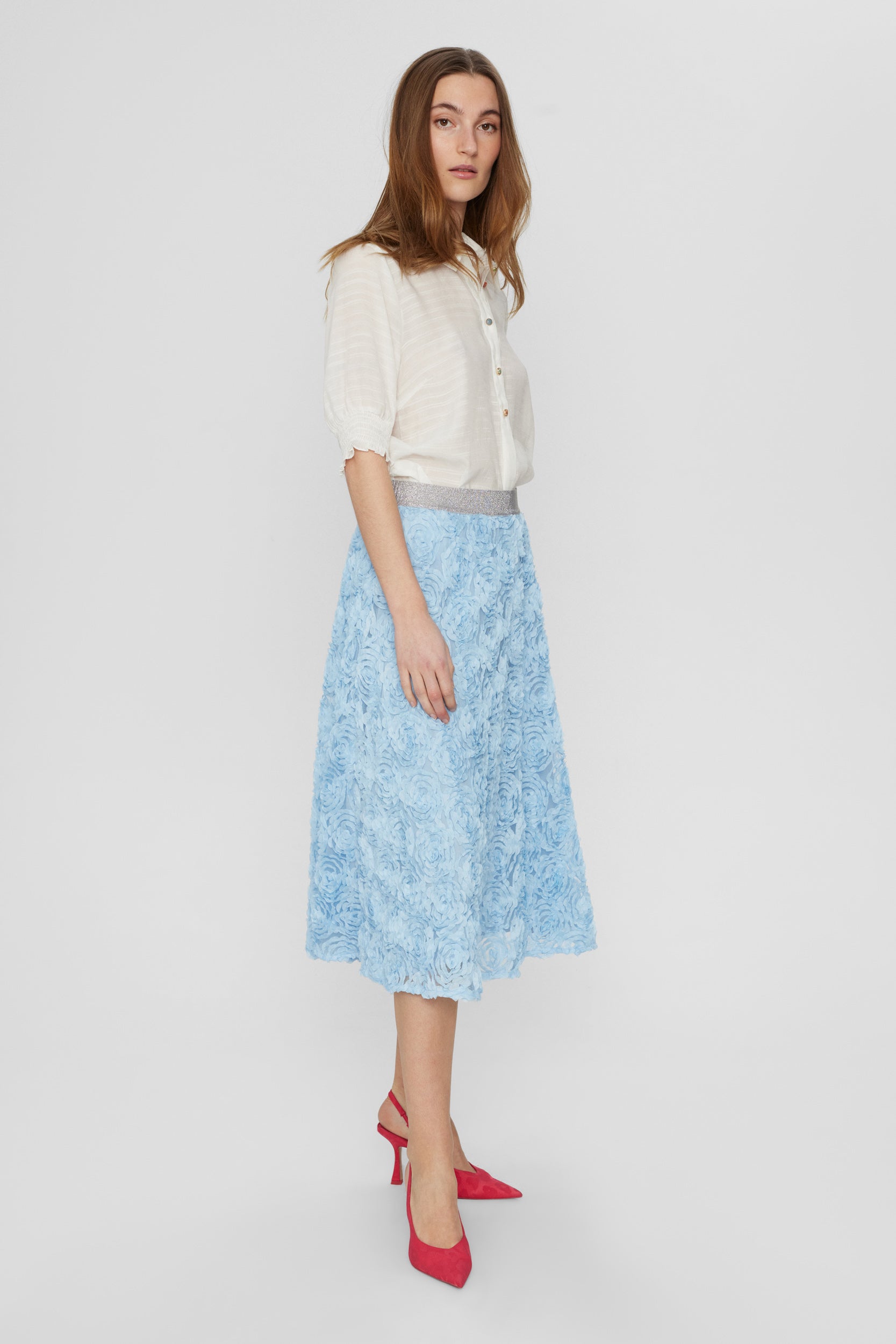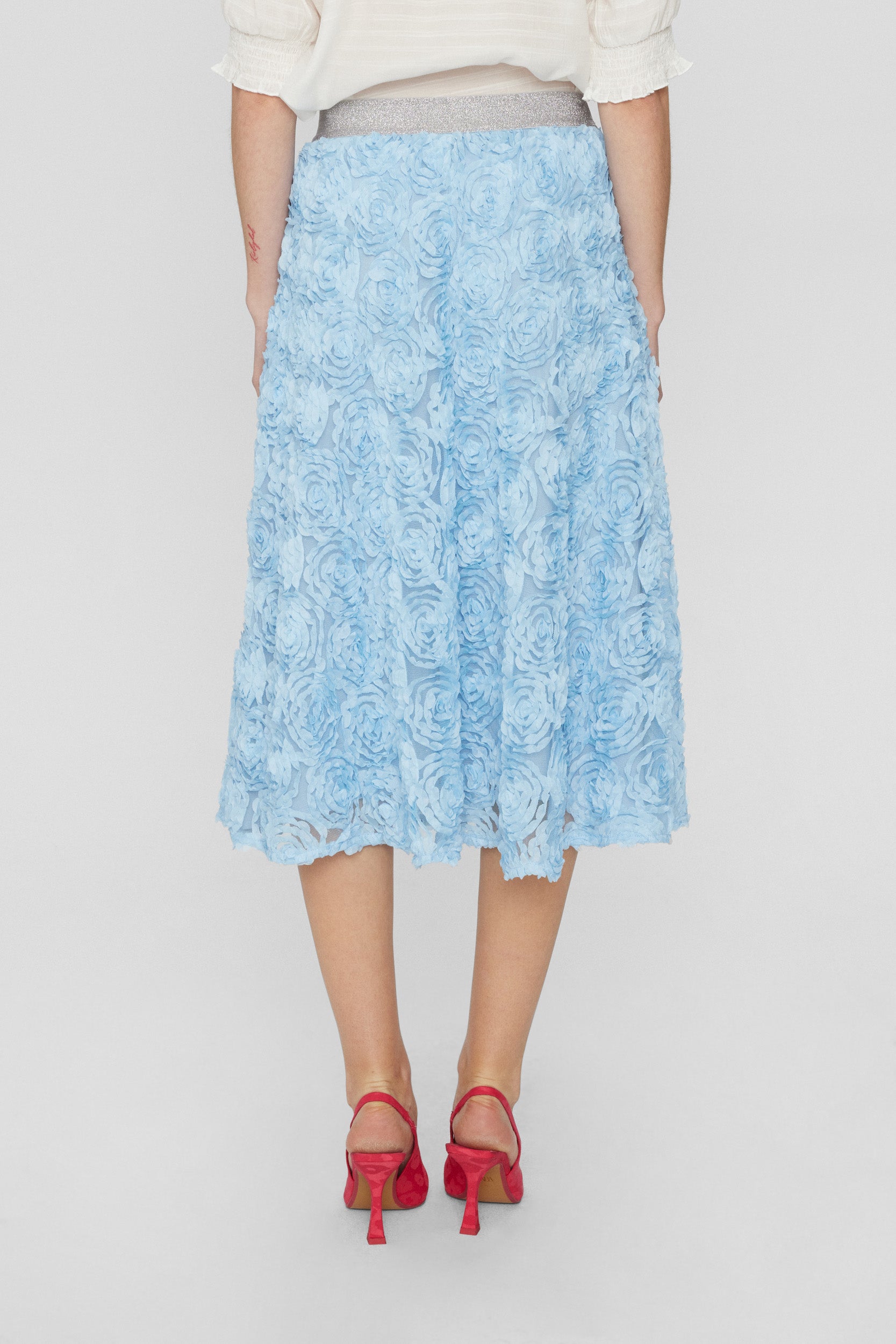 Nudorothea Top i den flotte farve Clear Sky fra Nümph. Nederdelen er med vidde og i taljen elastik i sølv lurex.
