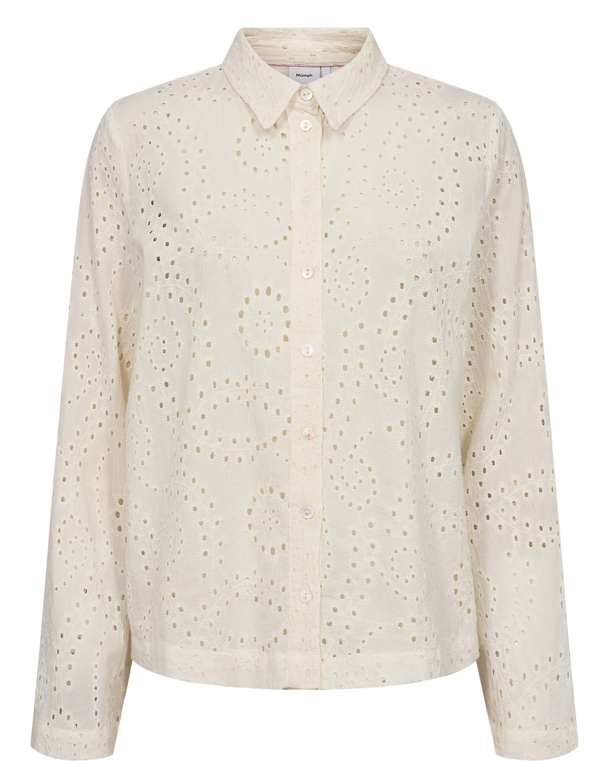 NUKAMMA skjorte i farven Cloud Dancer fra Nümh. Skjorten er syet i en flot bomulds blondestof.