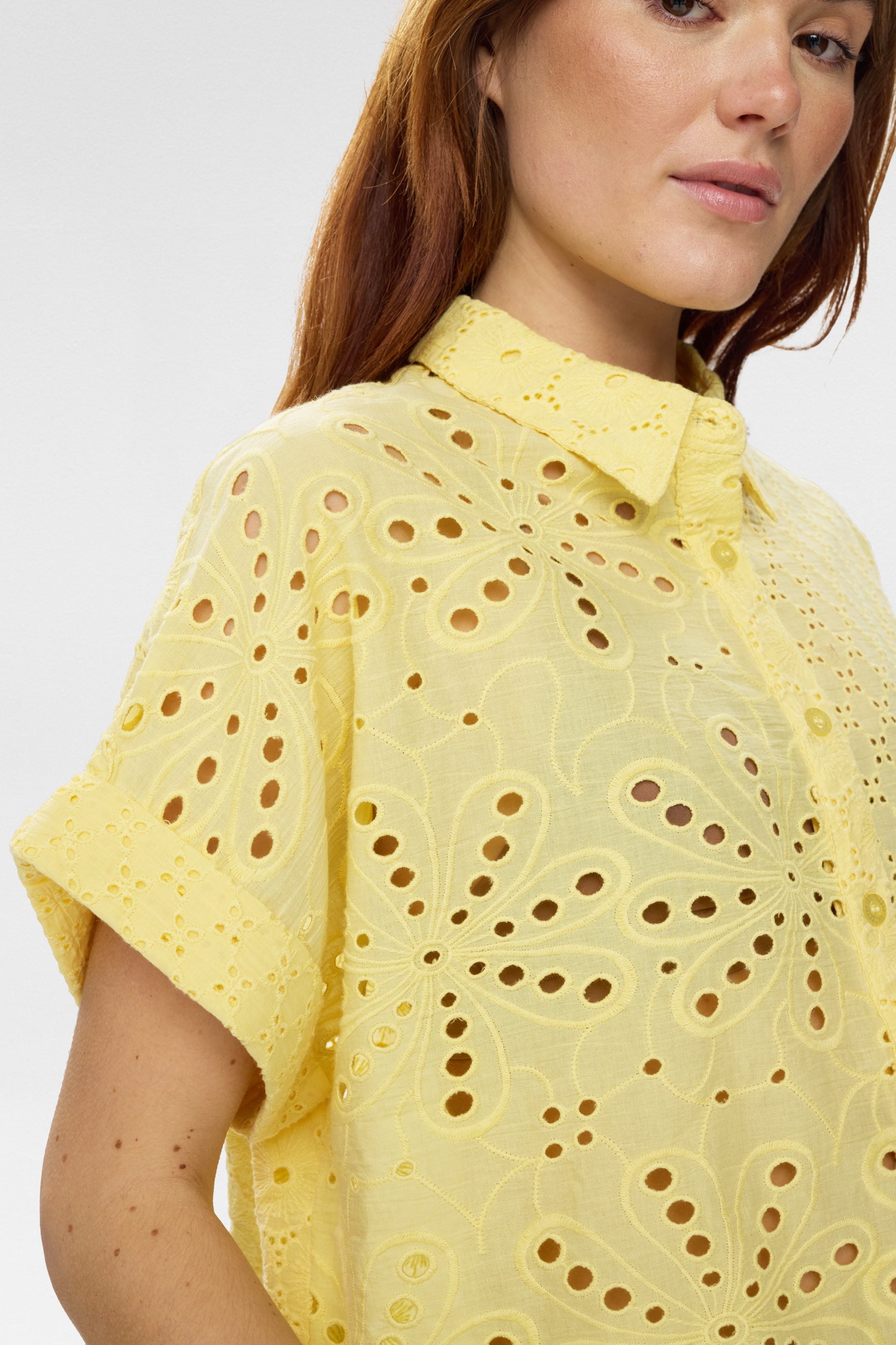 NUPALMA SLEEVELESS SHIRT i den flotte farve, Popcorn fra Nümph. Skjorten er med korte ærmer, har en god vidde.