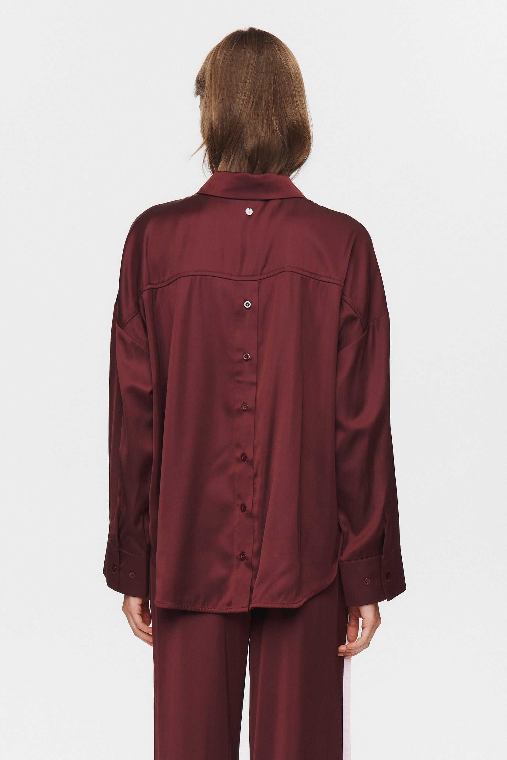 NUSANTINA SHIRT i farven Winetasting fra Nümph. Skjorten er let oversized og med skønne detaljer.