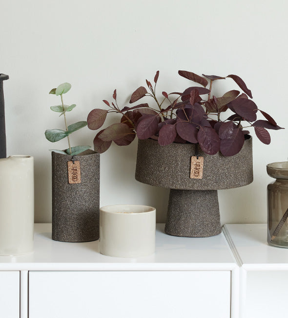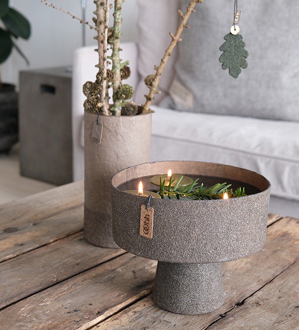 Opsatsen forener enkel elegance med naturlig dybde og er perfekt til alt fra blomsterdekorationer, juledekoration, vandbad med flydelys og andre dekorative formål. Formen løfter dit udtryk – og giver dig lyst til at skabe noget særligt.